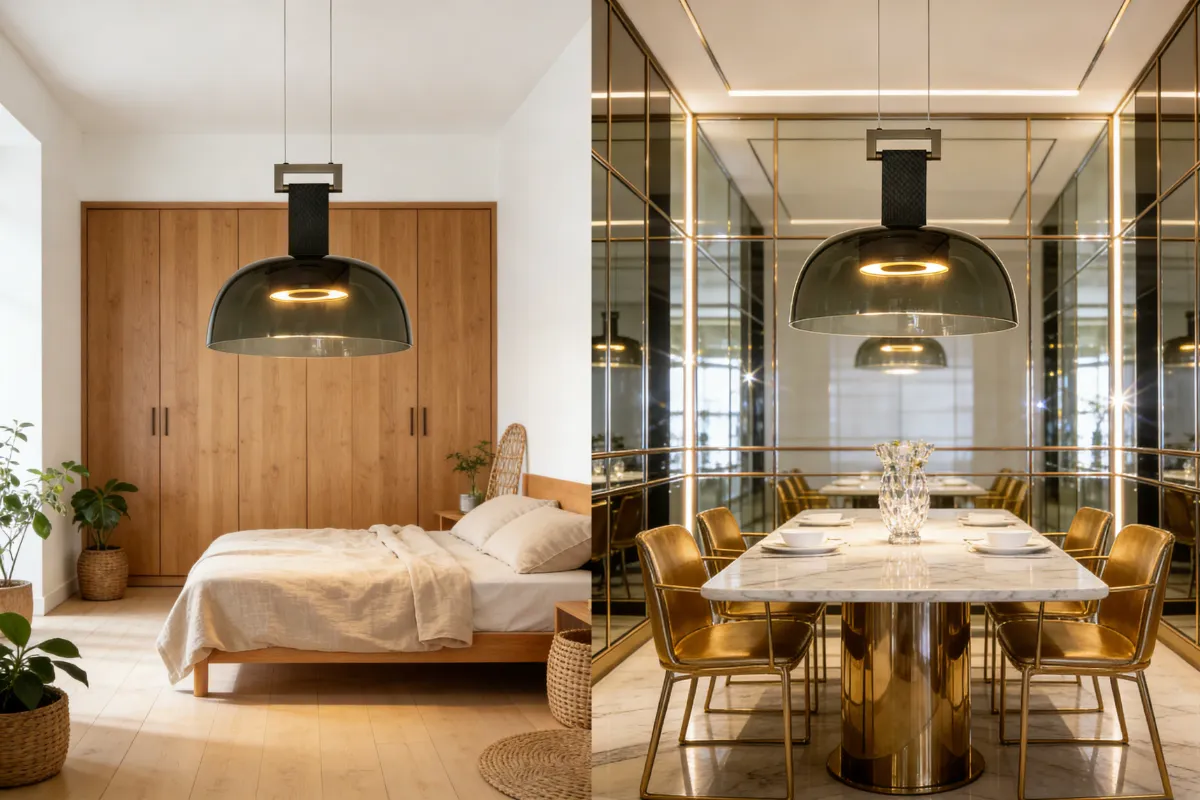 Lampa wisząca ANDREA to nowoczesne połączenie minimalistycznej formy z eleganckimi detalami. Transparentny, półokrągły klosz subtelnie eksponuje źródło światła, a dekoracyjny, teksturowany element w górnej części nadaje całości wyrazistego charakteru. Model doskonale sprawdzi się w nowoczesnych, loftowych i industrialnych aranżacjach.