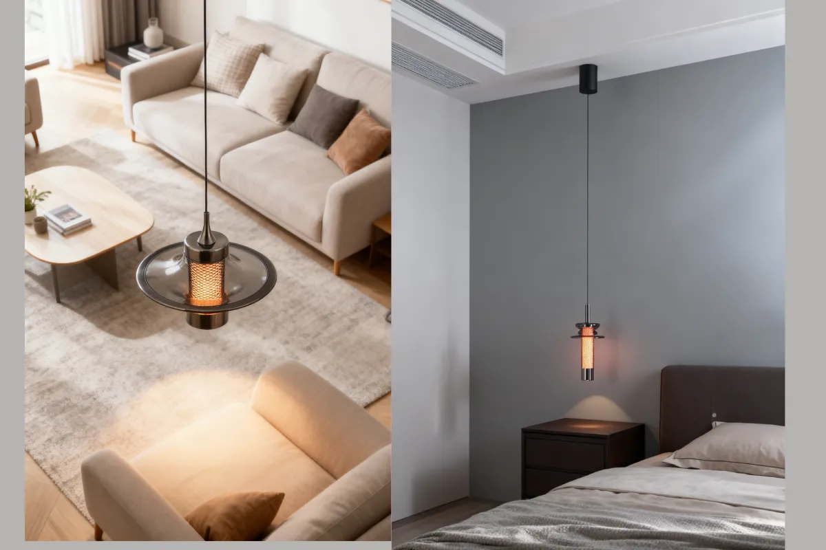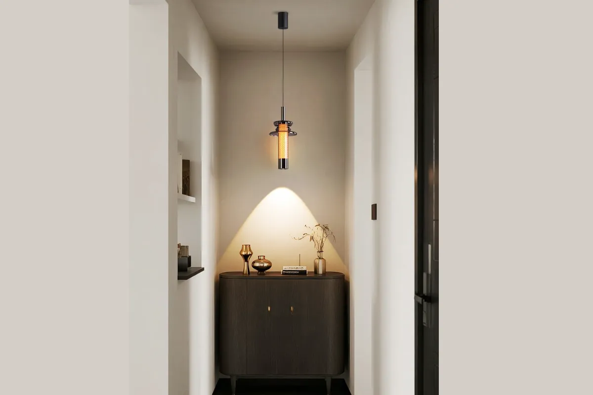 Ta lampa wisząca to nowoczesna interpretacja industrialnej estetyki, łącząca smukłą, pionową formę z dekoracyjnym źródłem światła. Cylindryczny klosz z ażurową strukturą emituje ciepłe, intensywne światło, które tworzy efektowną poświatę i nadaje wnętrzu charakteru.