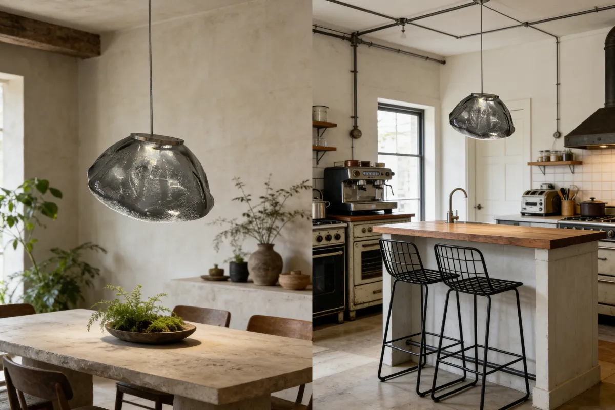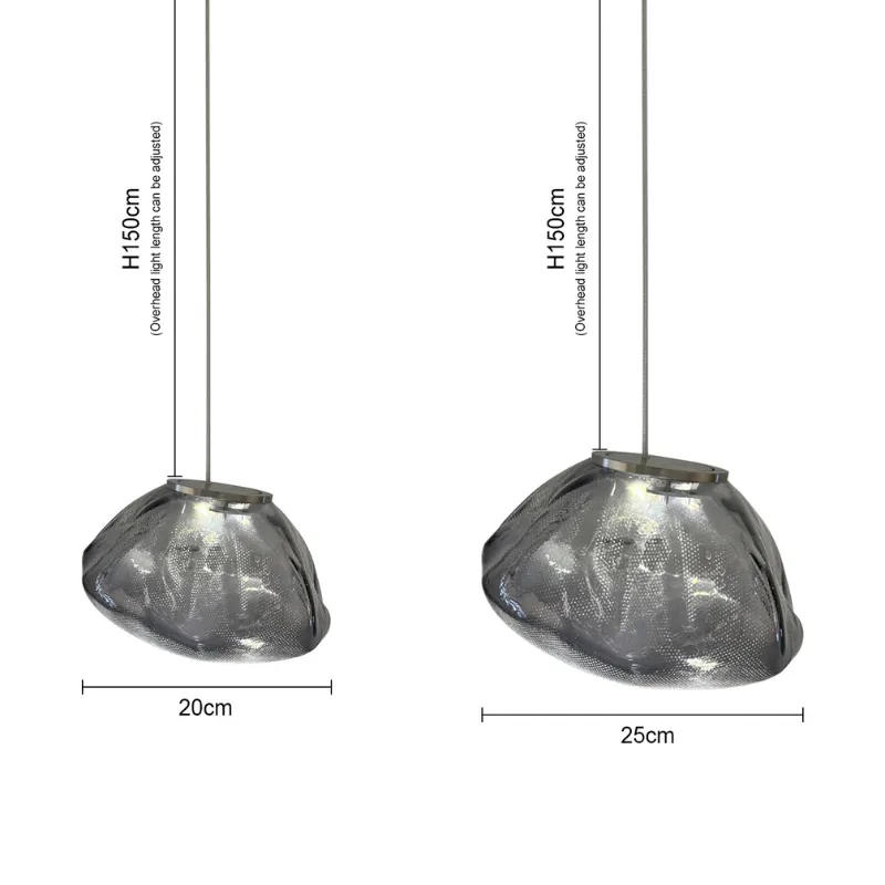 Lampa wisząca CRYSTAL to artystyczna kompozycja inspirowana naturalną formą kryształu i nieregularną strukturą szkła. Organiczne, półtransparentne klosze tworzą wyjątkową grę światła i subtelnych refleksów. Model doskonale sprawdzi się jako dekoracyjne oświetlenie salonu, jadalni lub nowoczesnej przestrzeni komercyjnej.