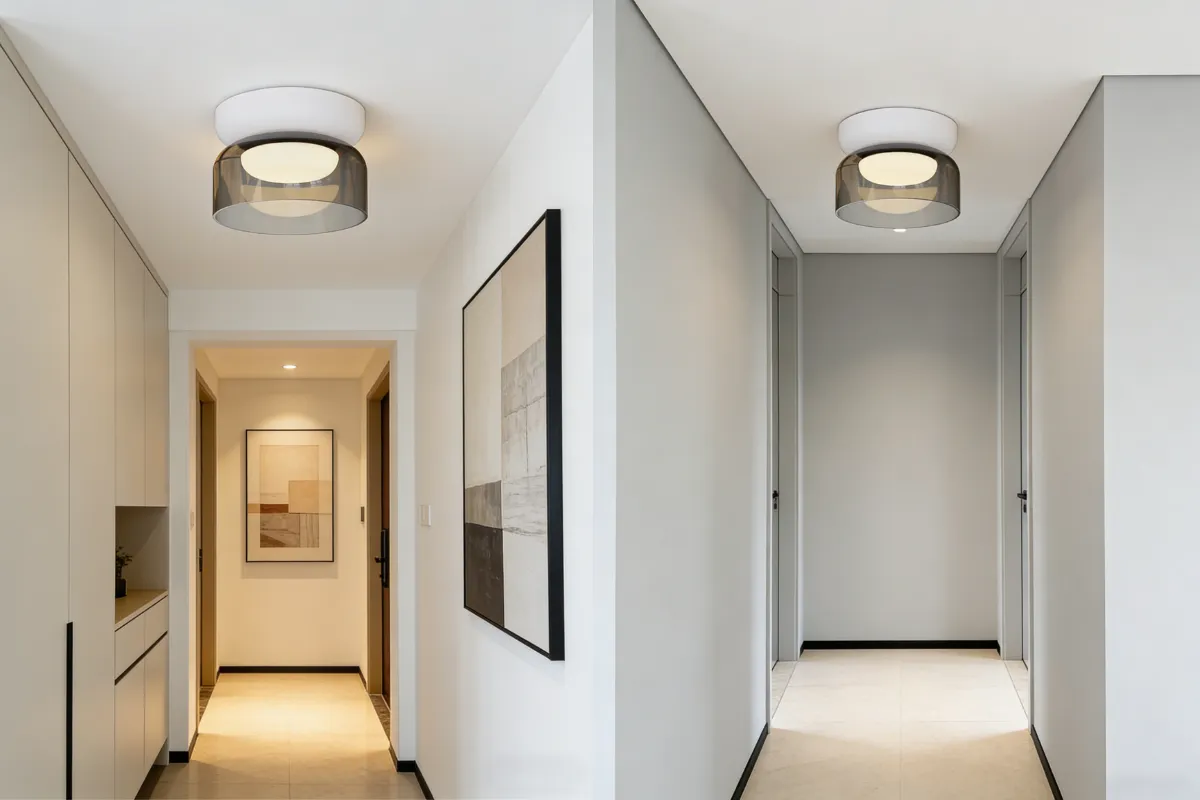 Kolekcja to nowoczesne lampy wiszące o miękkiej, warstwowej formie, w których dwa cylindryczne klosze tworzą harmonijną i elegancką kompozycję. Subtelne szkło w wersji mlecznej lub przydymionej delikatnie filtruje światło, nadając wnętrzu ciepły i przytulny charakter.